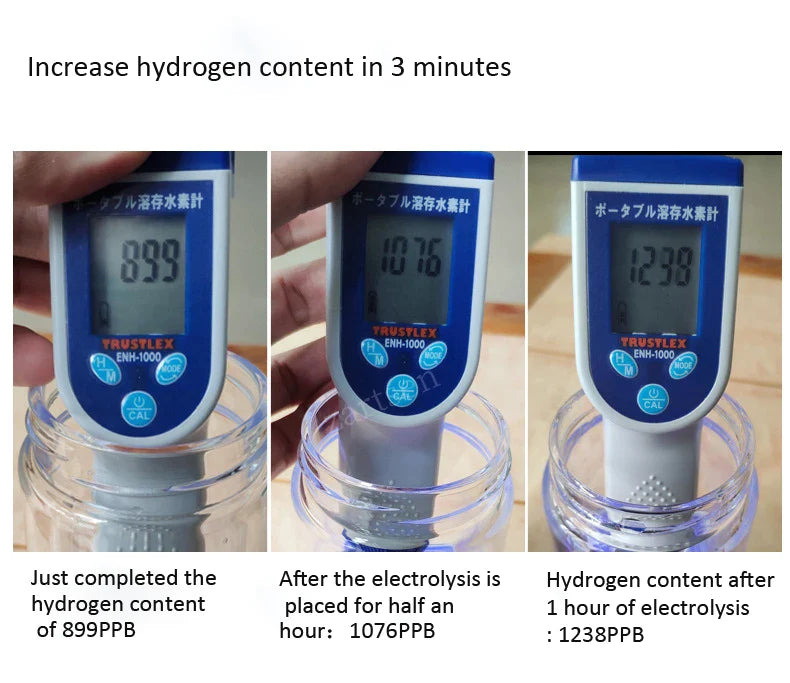Hydrogen is a very strong antioxidant, and it's the smallest molecule. Because it's so tiny, it can get deep into cells and help get rid of harmful free radicals. Free radicals can damage cells and lead to health problems like cancer, Alzheimer's, high blood pressure, and diabetes. Our Hydrogen Water Bottle is important in reducing this damage. It gives your body molecular hydrogen, which helps create a healthier balance and makes your cells stronger.