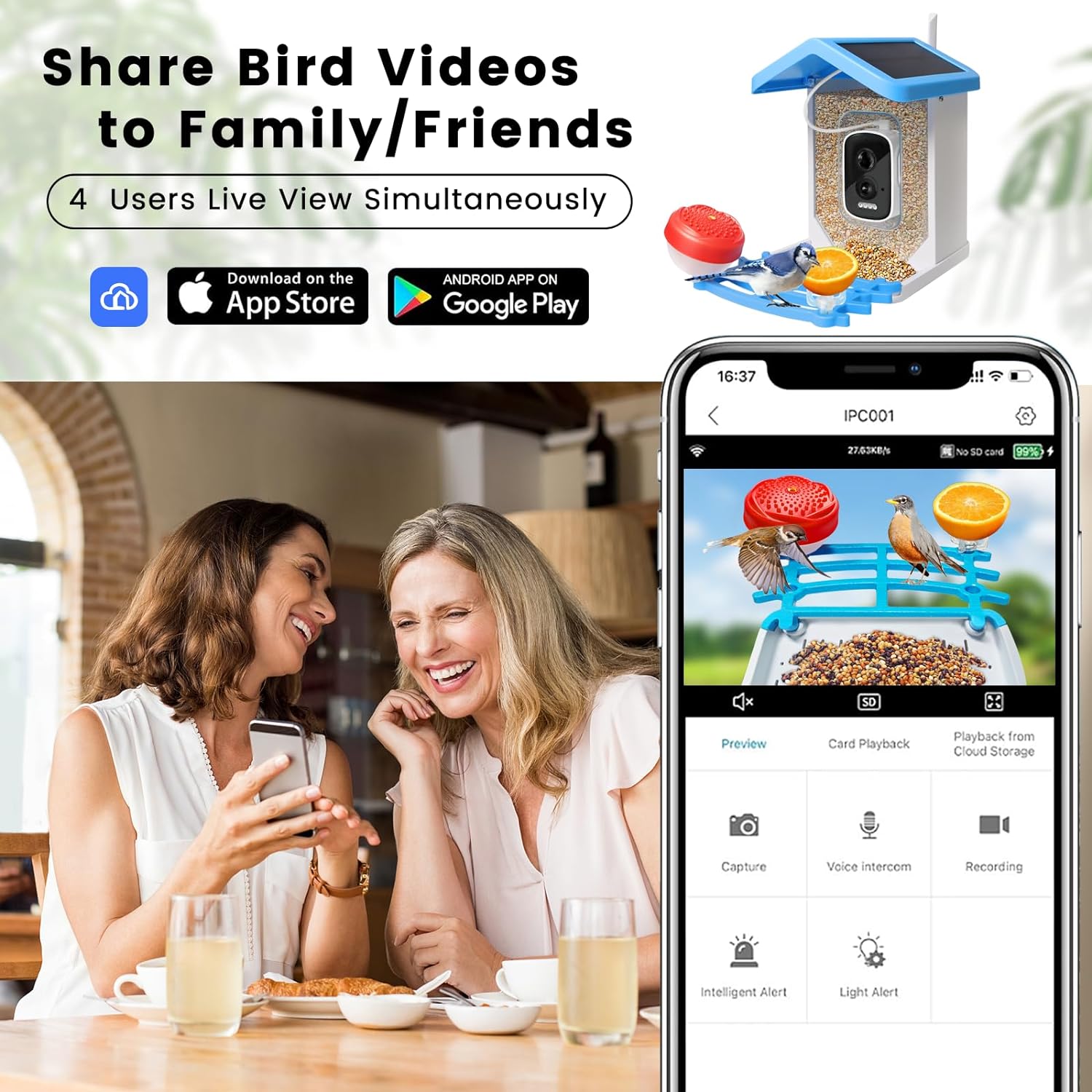 Enjoy crystal-clear images with 2560P high resolution and 4X magnification. Whether it’s day or night, the advanced camera technology and 5dBi antenna ensure a stable connection and detailed views of your avian visitors, making every sighting a vivid experience.
