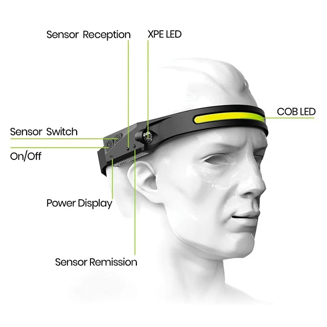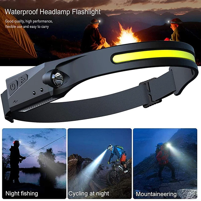 Rechargeable Waterproof 230° LED Headlamp – Headlight With Motion Detection