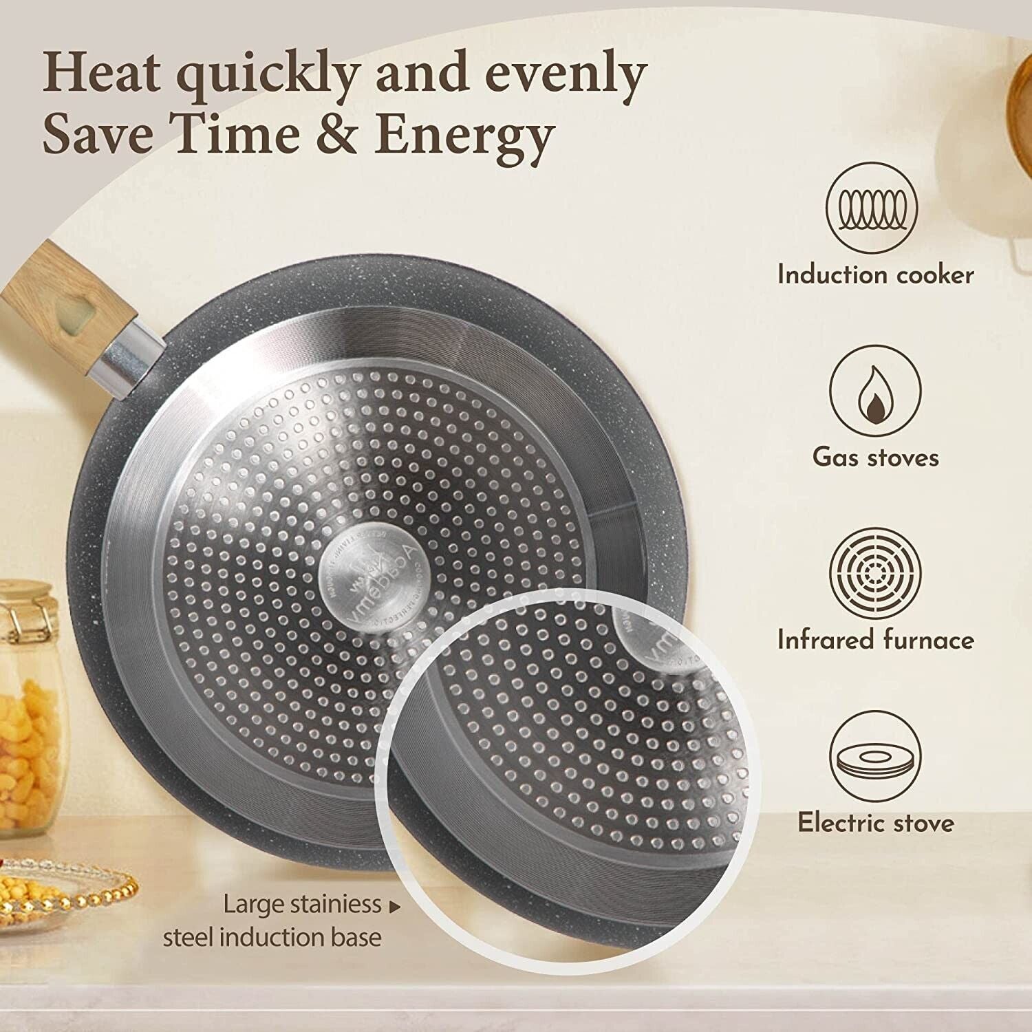 Attractive Granite Finish: The granite finish not only adds a luxurious aesthetic to your kitchen but also provides an extra layer of durability. Enjoy cookware that looks as good as it performs.