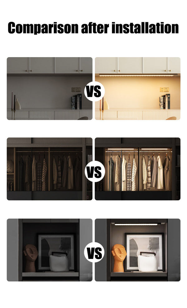 Choose from warm white (3000K), natural white (4000K), or cool white (6000K) to match your ambiance. Whether you need bright task lighting or a cozy glow, this motion sensor cabinet light adapts to your needs.