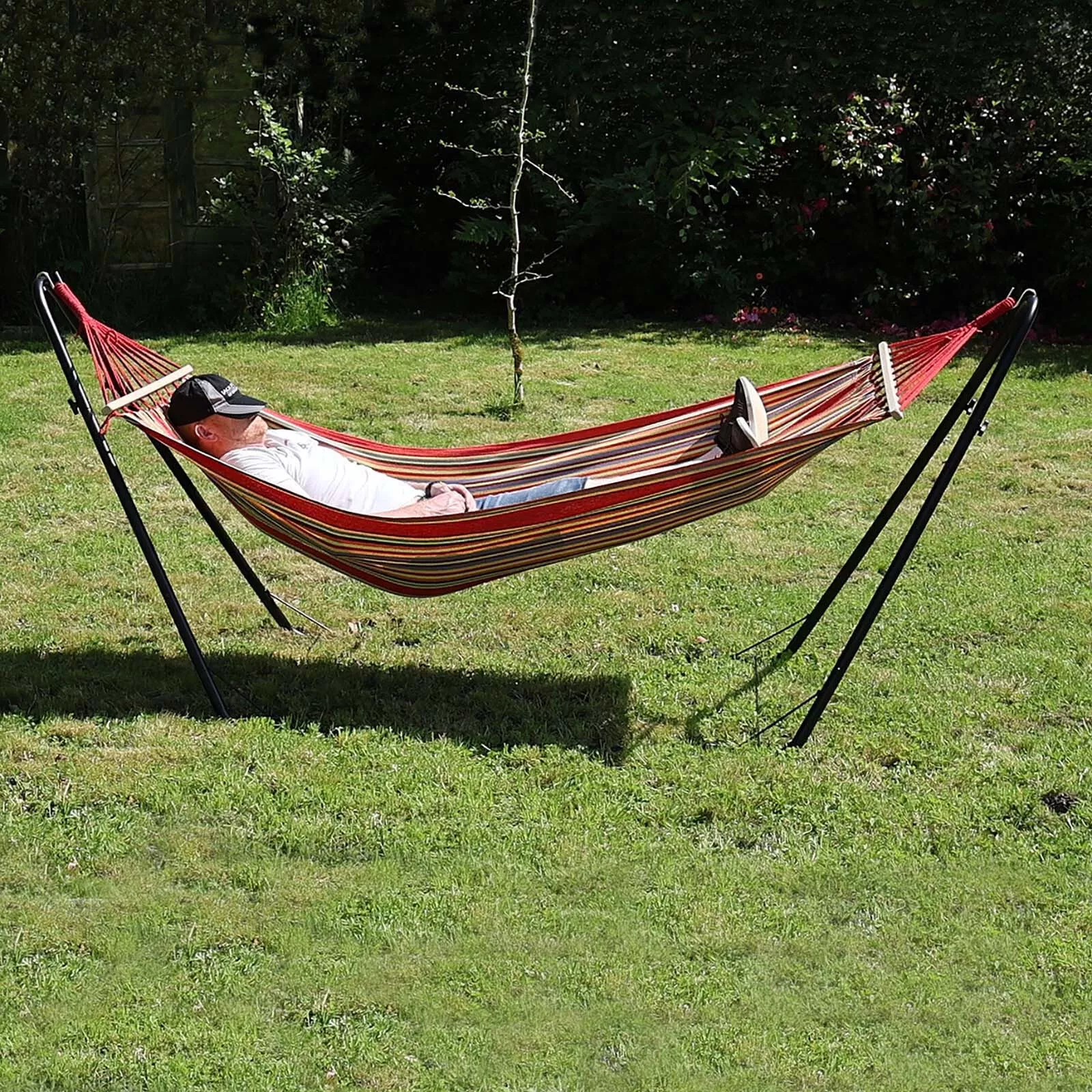 ✅ Easy Setup & Portability – The hammock stand is designed for quick assembly, so you can set it up in minutes without any tools. Plus, it's lightweight and easy to transport, making it perfect for camping, picnics, or beach trips.