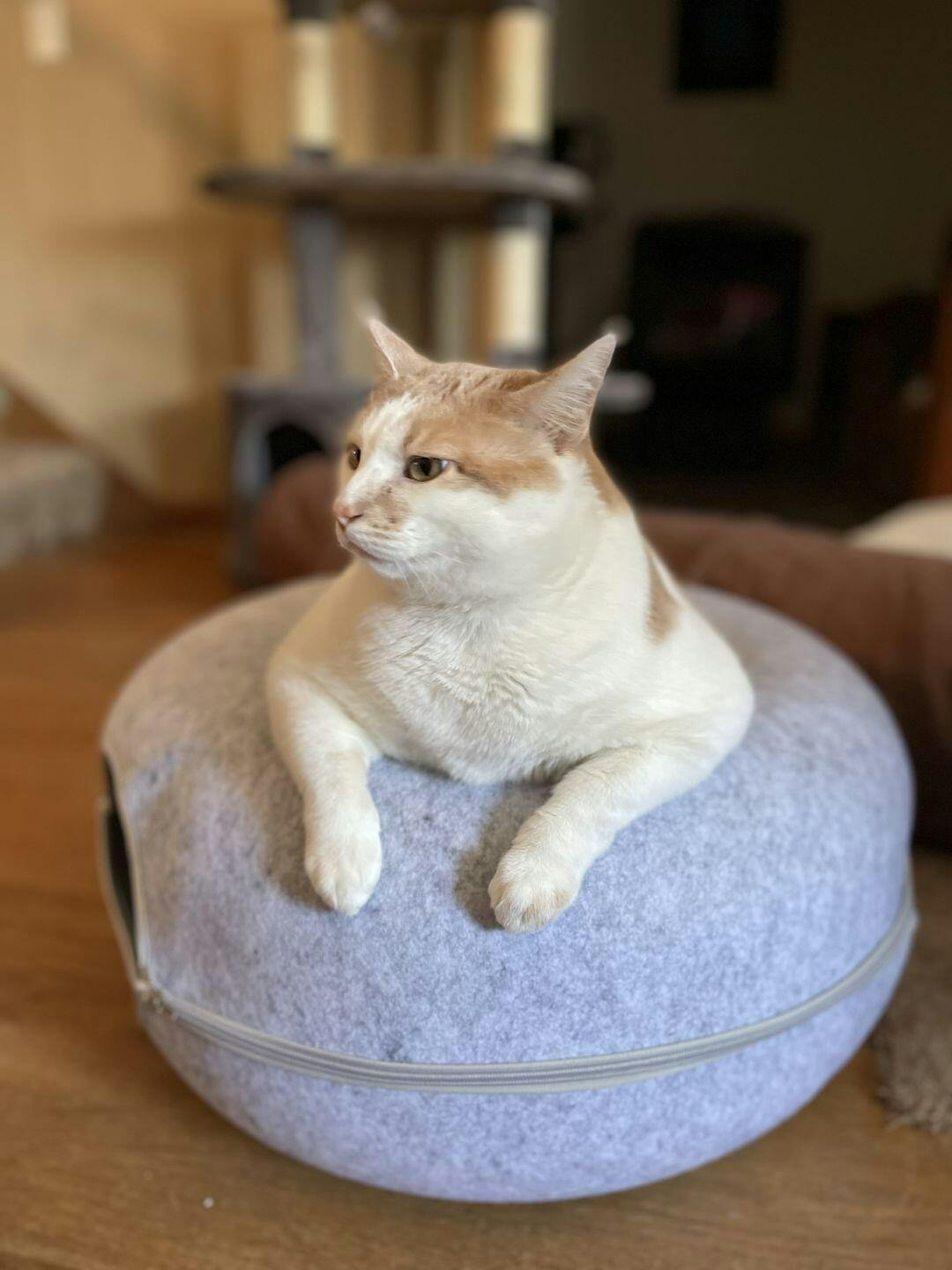 With its large size, this Donut Cat Bed is ideal for households with multiple cats. Whether they want to snuggle together inside or climb on top for a lookout spot, this bed provides plenty of room for relaxation and play.