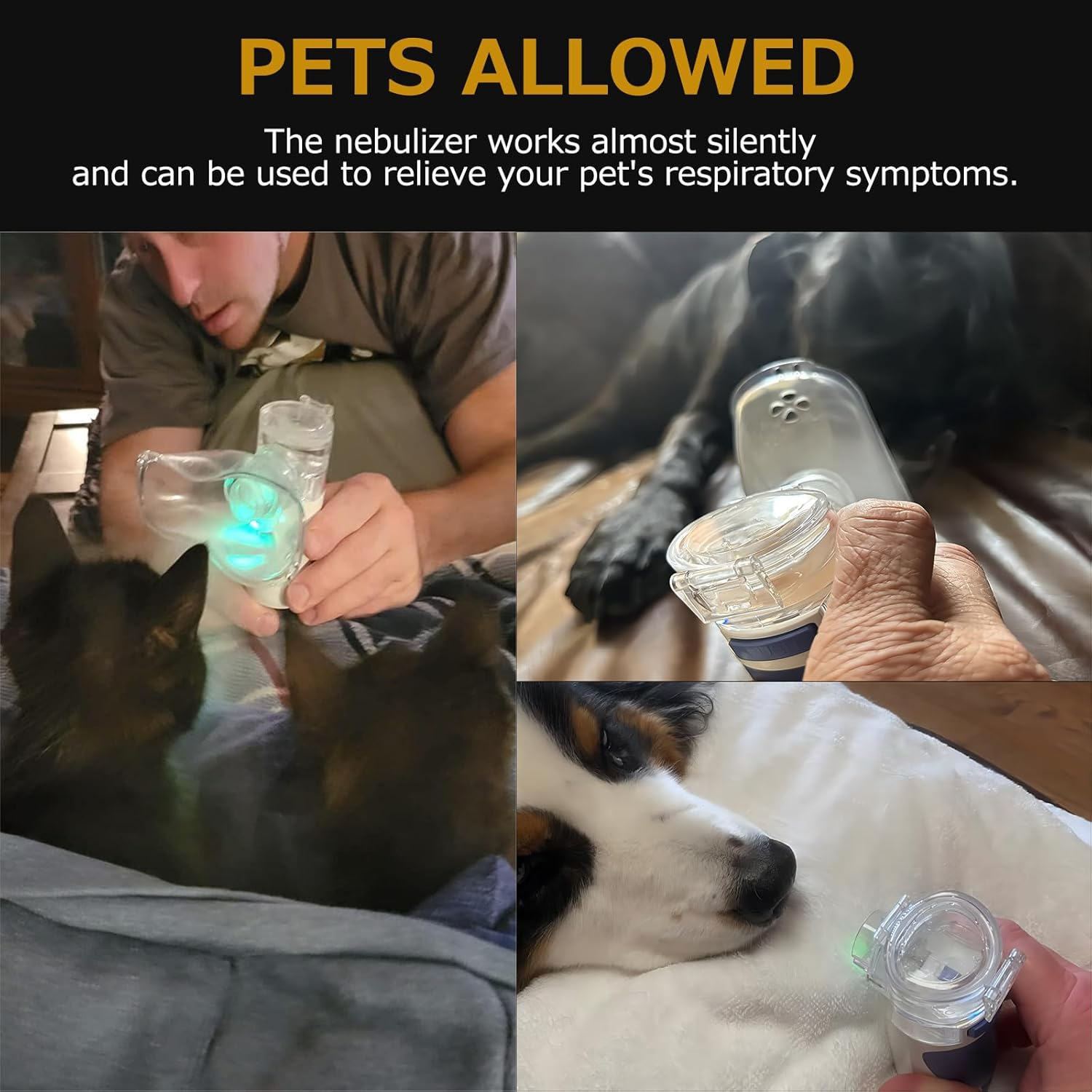 The nebulizer atomizes liquid into tiny particles that enable the drug to enter the respiratory tract and lungs when inhaling.