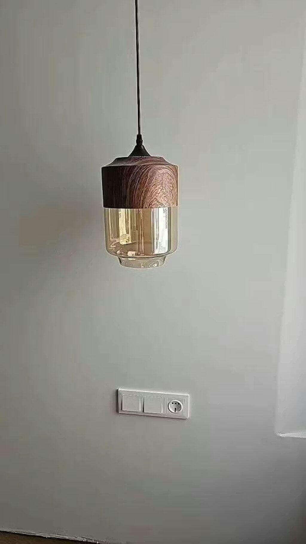Nordic Wood Glass Pendant Light – Modern Hanging Lamp