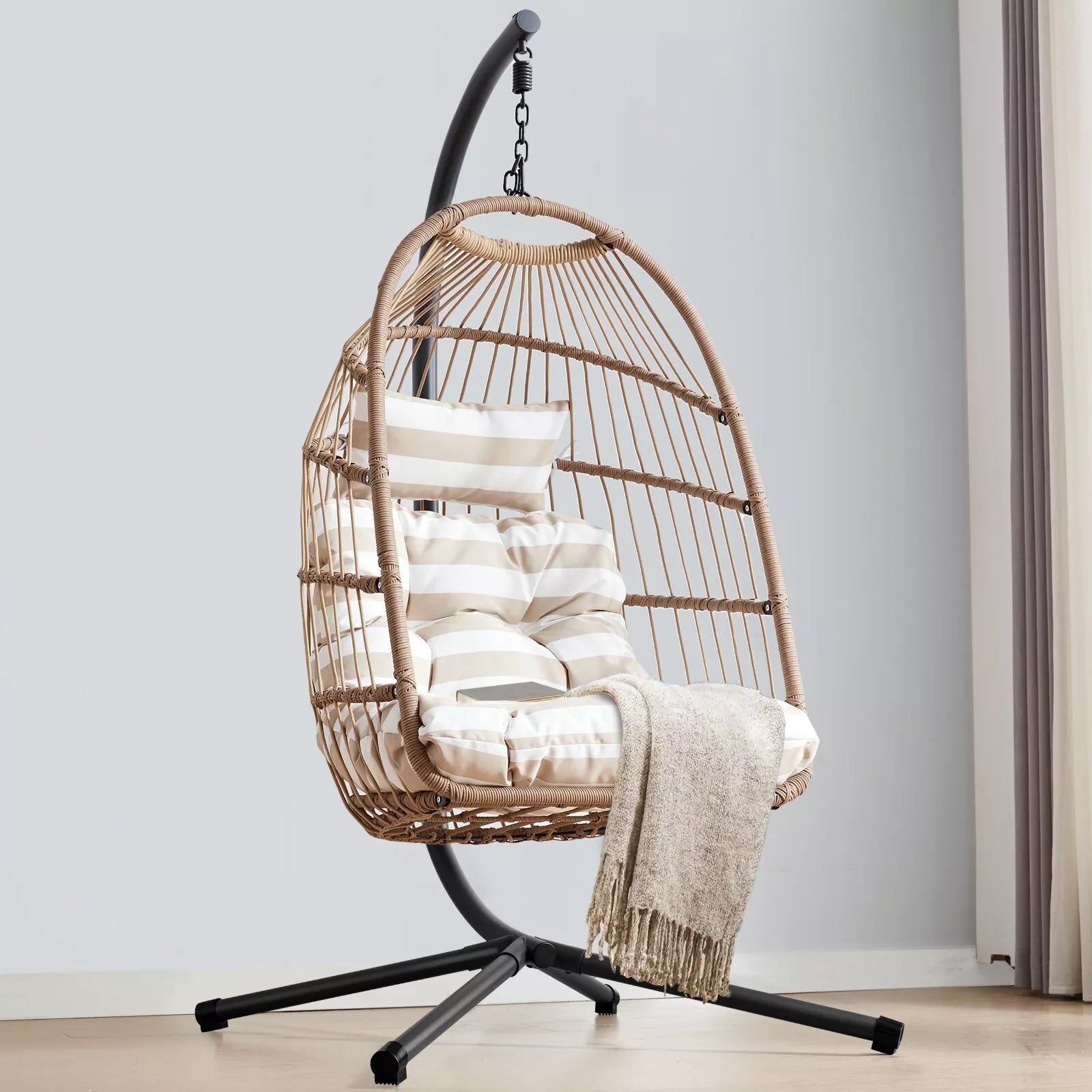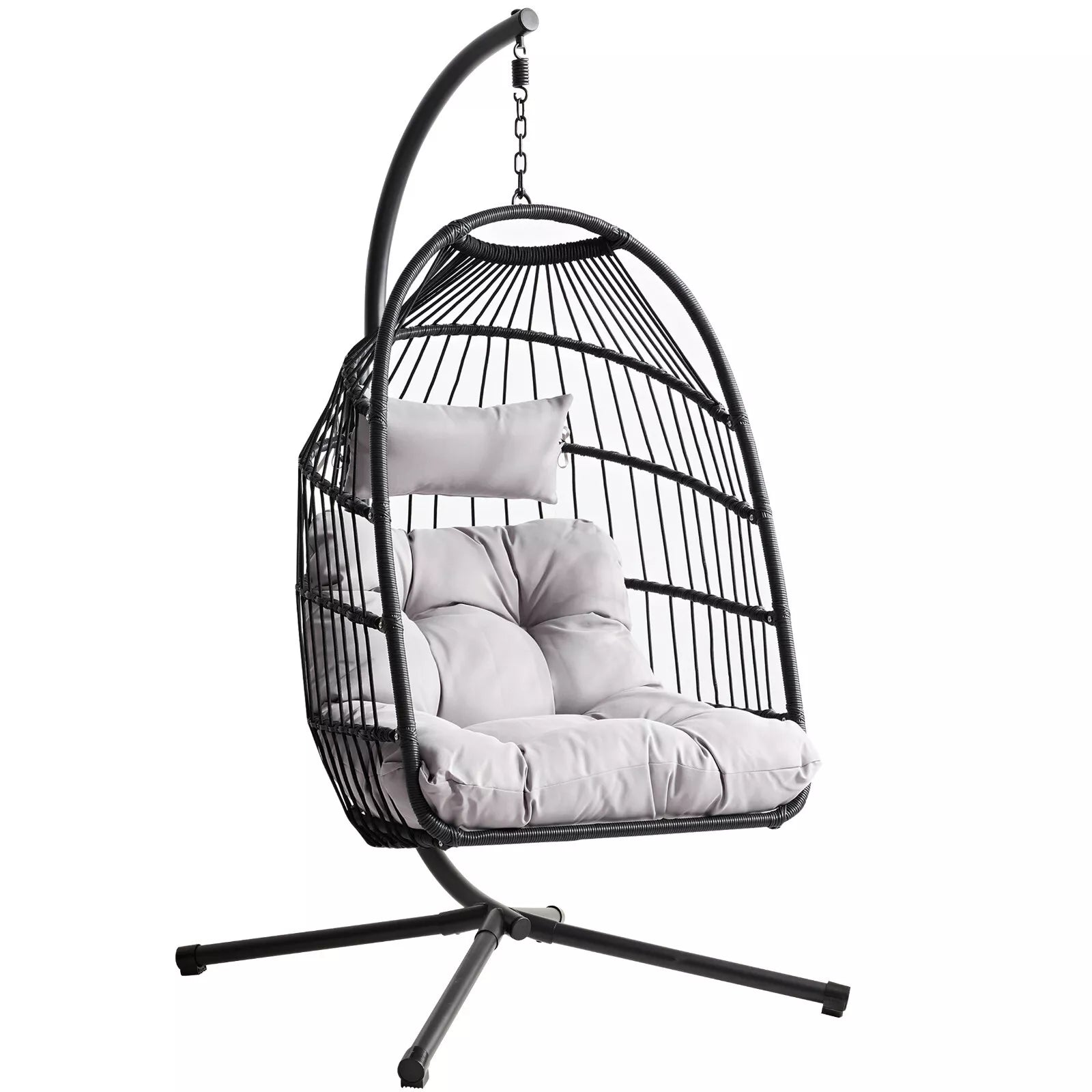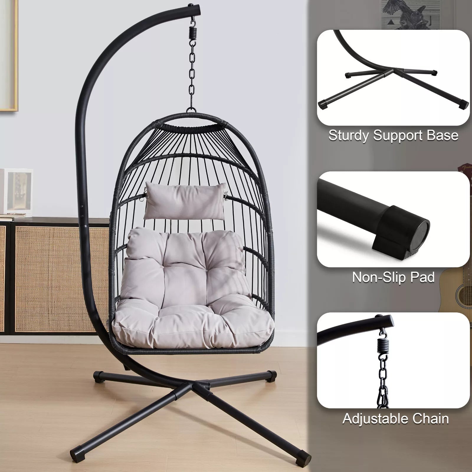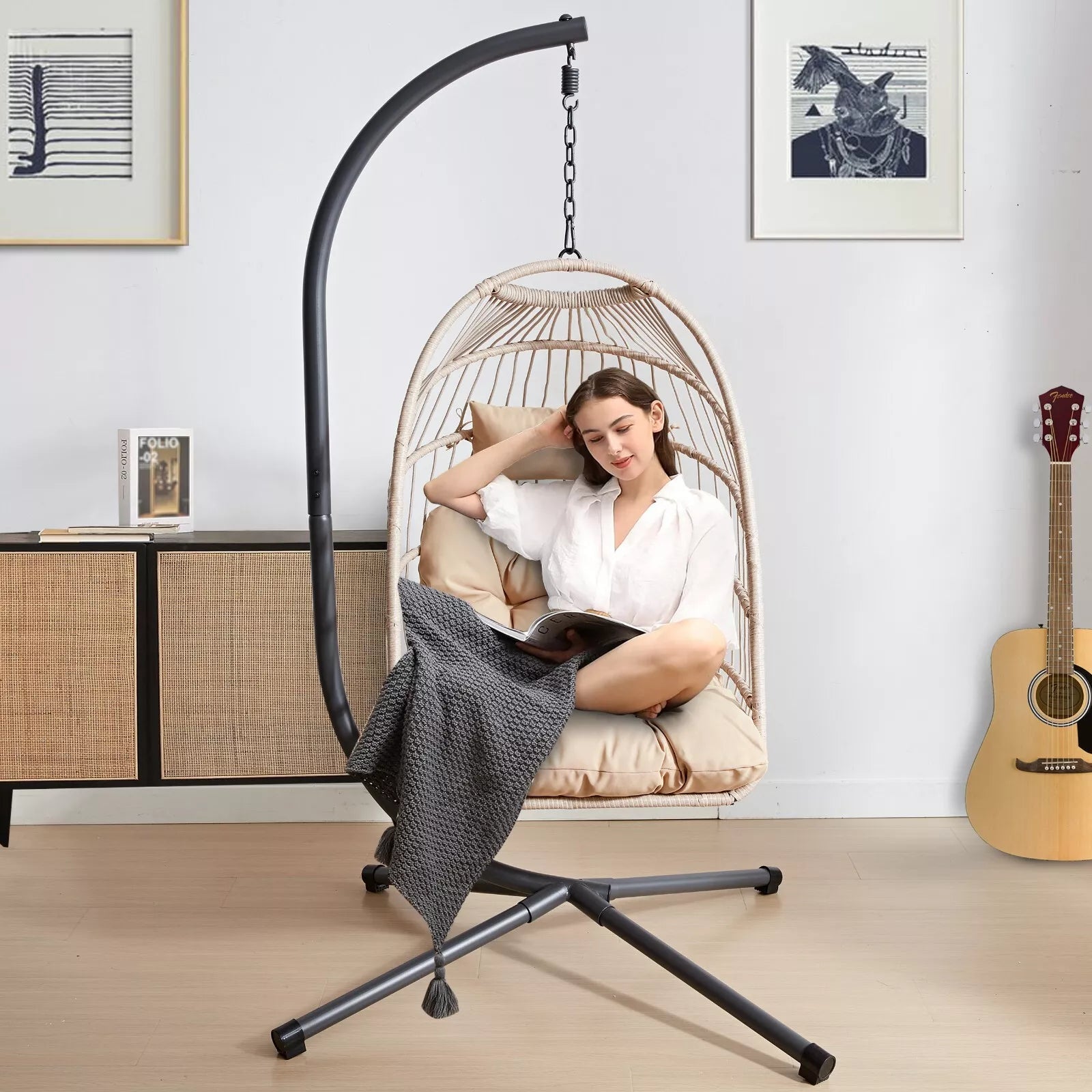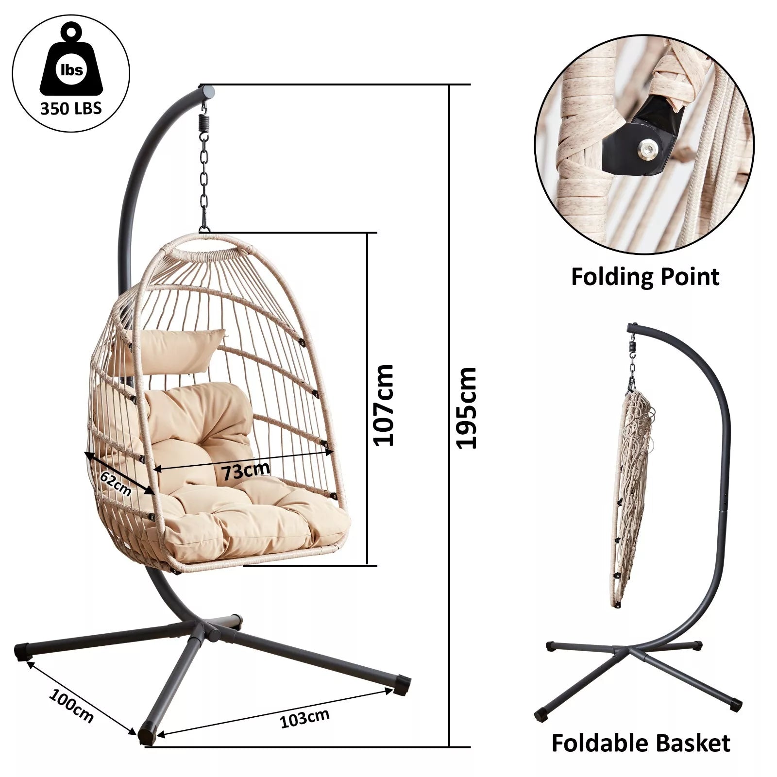 Easily fold and store your chair when not in use or adjust the height to suit your preference. With effortless assembly and a sleek, space-saving design, this Hanging egg chair blends style with practicality in any setting.