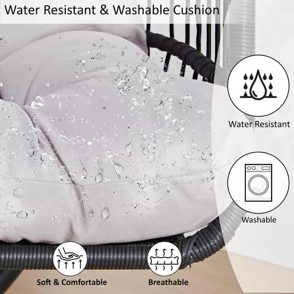 Sink into ultimate relaxation with a plush, ergonomic cushion that contours perfectly to your body. Designed for superior comfort, this hanging egg chair is perfect for lounging, reading, or unwinding after a long day.