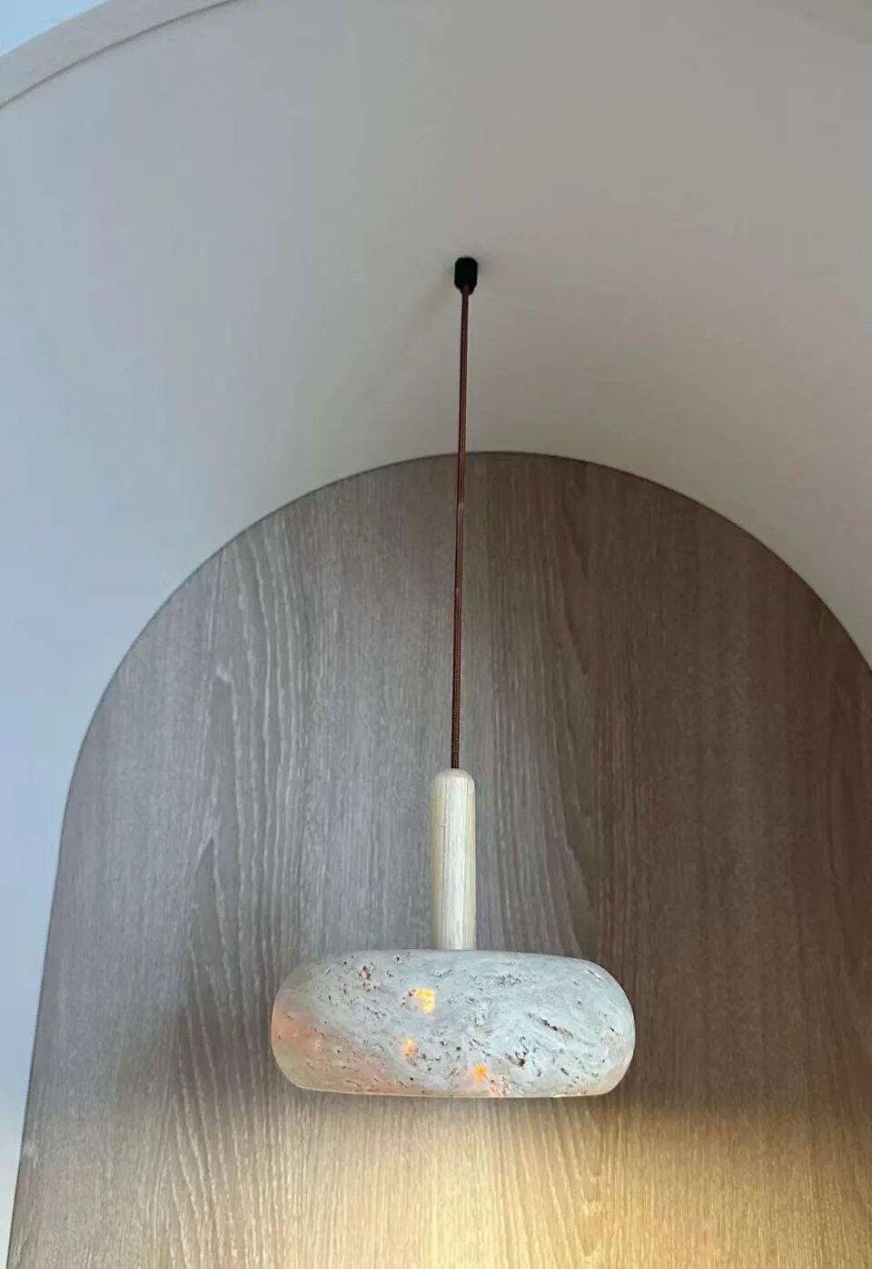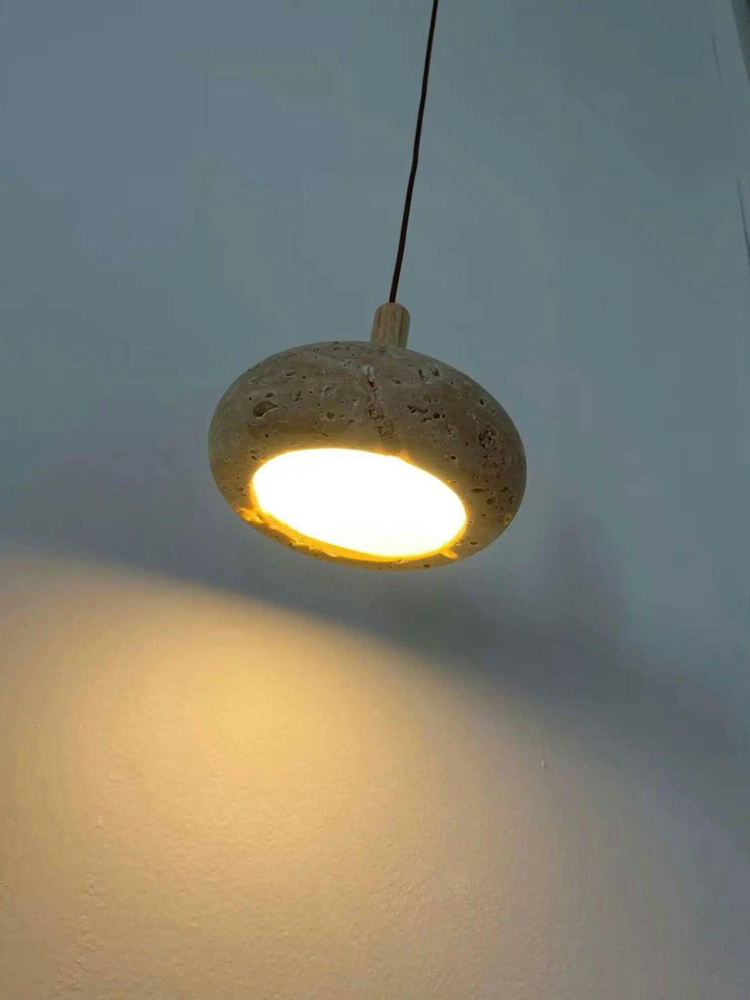 Small Pendant Light with Travertine Stone Design – LED Indoor Lamp for Living Room and Bedroom