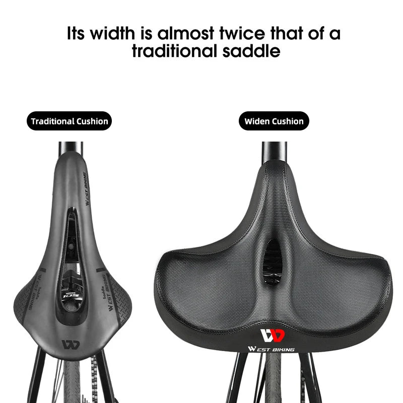 Whether you're cruising city streets or tackling mountain trails, the WEST BIKING wide bike saddle provides superior shock absorption and ergonomic support for long, pain-free rides.